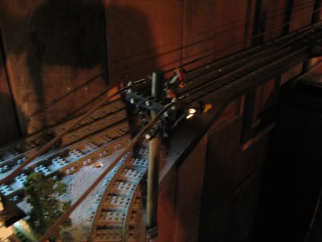 We've passed the Pony Truss and now we're approaching what I've called Train Yard 2. This is the wall with the two tunnels entering and exiting my bedroom. You can clearly see my train shed and water tower. The red brick tunnel at the edge if the door is where power to feed the tracks, charge the Emerald night and power the lights are all controlled on the bedroom side of the wall.
