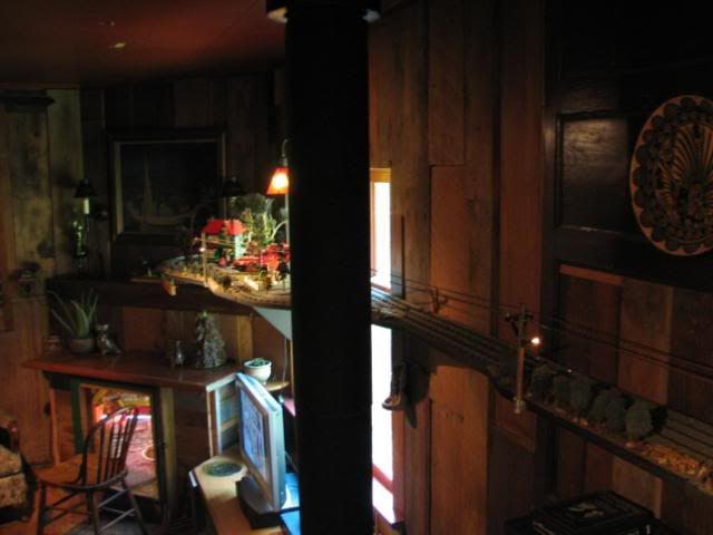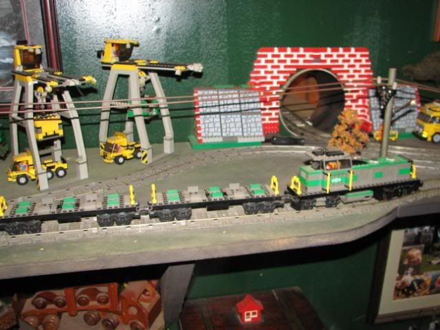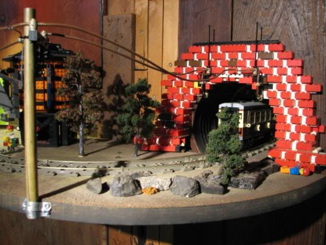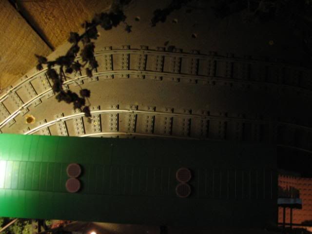 The picture above, you can see the passenger car of the EN inside the tunnell. The pictures below are now viewing the bedroom side of the layout. The rest of the pics simply go in order around the bedroom towards the closet where the train loops once more to the other way.