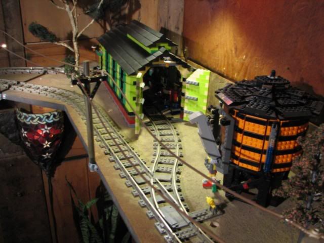 The tunnell that exits the bedroom you see just at the back of the train shed.