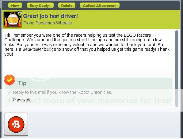 MsRR sent me a mail in MLN saying "look at my new badge", I didn't have to of course, I got one too. The funny part is, is that the choice of easy replies, the one I chose to reply with was, "Wow, that must have taken forever", and that's also the truth. The additional interaction was cool, especially when you could talk to your apponent, and MsRR and I had alot of races (she usually won, I'm a gentlemen eh, most of the time).