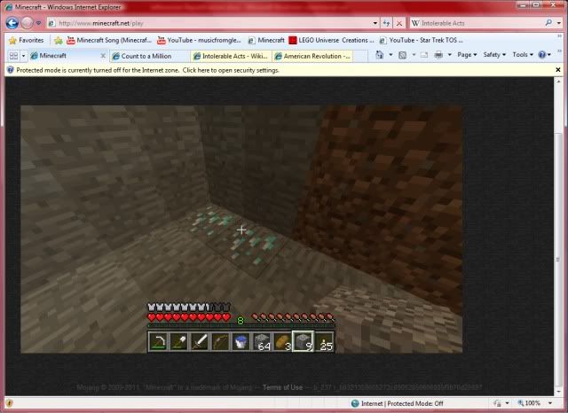 Updated to Minecraft 1.0 and made an all new world to try out the new features. I found an abandoned mineshaft behind-under-ish my house in the first 15 minutes (if that a remarkable feat...) and found 2 diamonds. Life's good Grin
